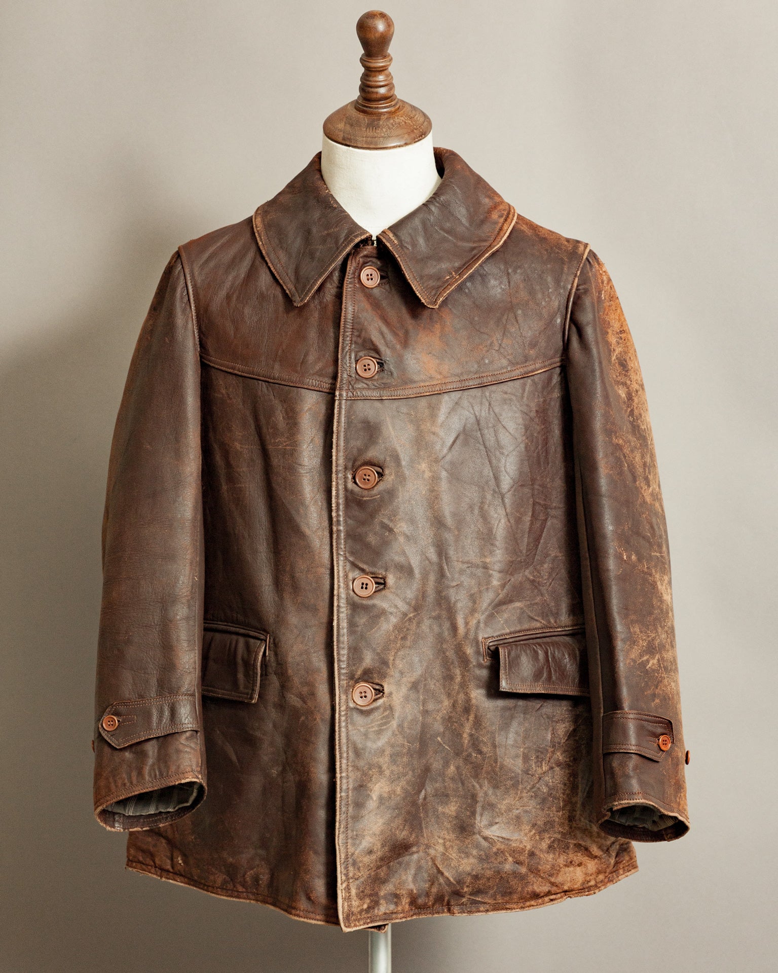 Each jacket we restore begins its journey with a story — its marks, its patina, its character. From the moment it arrives in our hands, we honour that story with unwavering care. Through a considered process of meticulous craftsmanship, we clean, repair, and revive every piece, blending traditional skills with advanced cleaning technology, preserving its original charm to create something as authentic as it is beautiful.