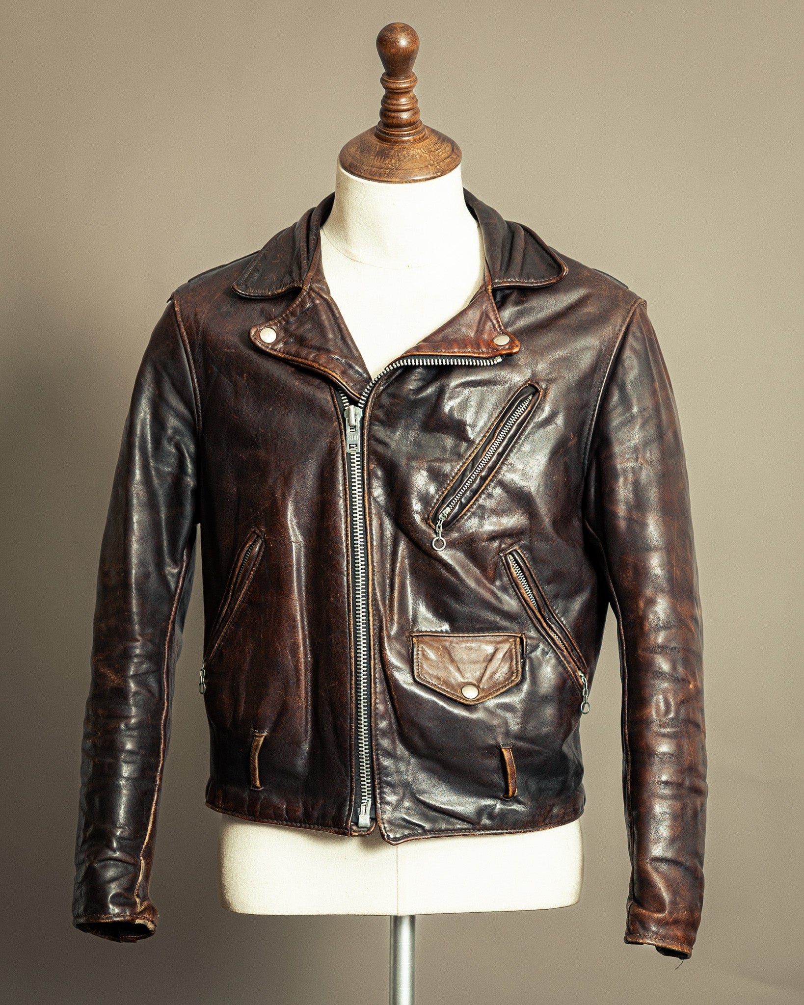 A focused selection of vintage biker jackets spanning post-war motorcycle culture through...
