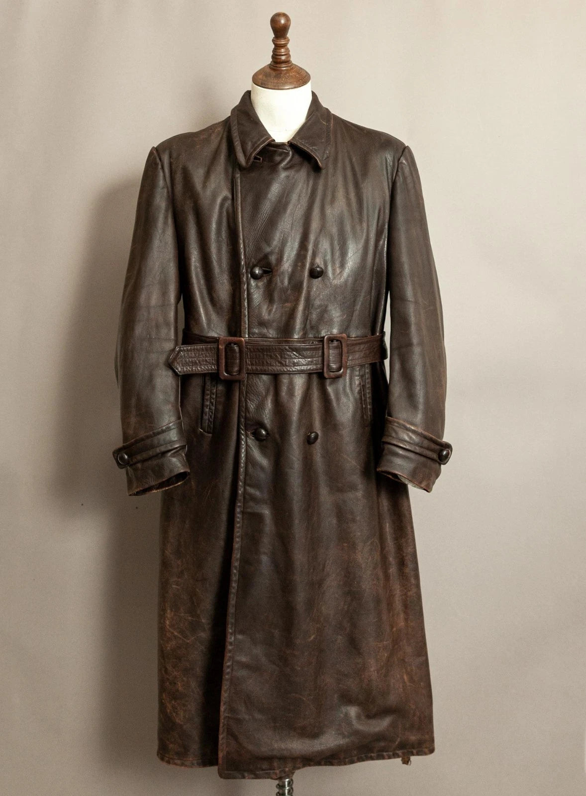 A curated selection of vintage trench coats spanning the 1930s to 1950s,...