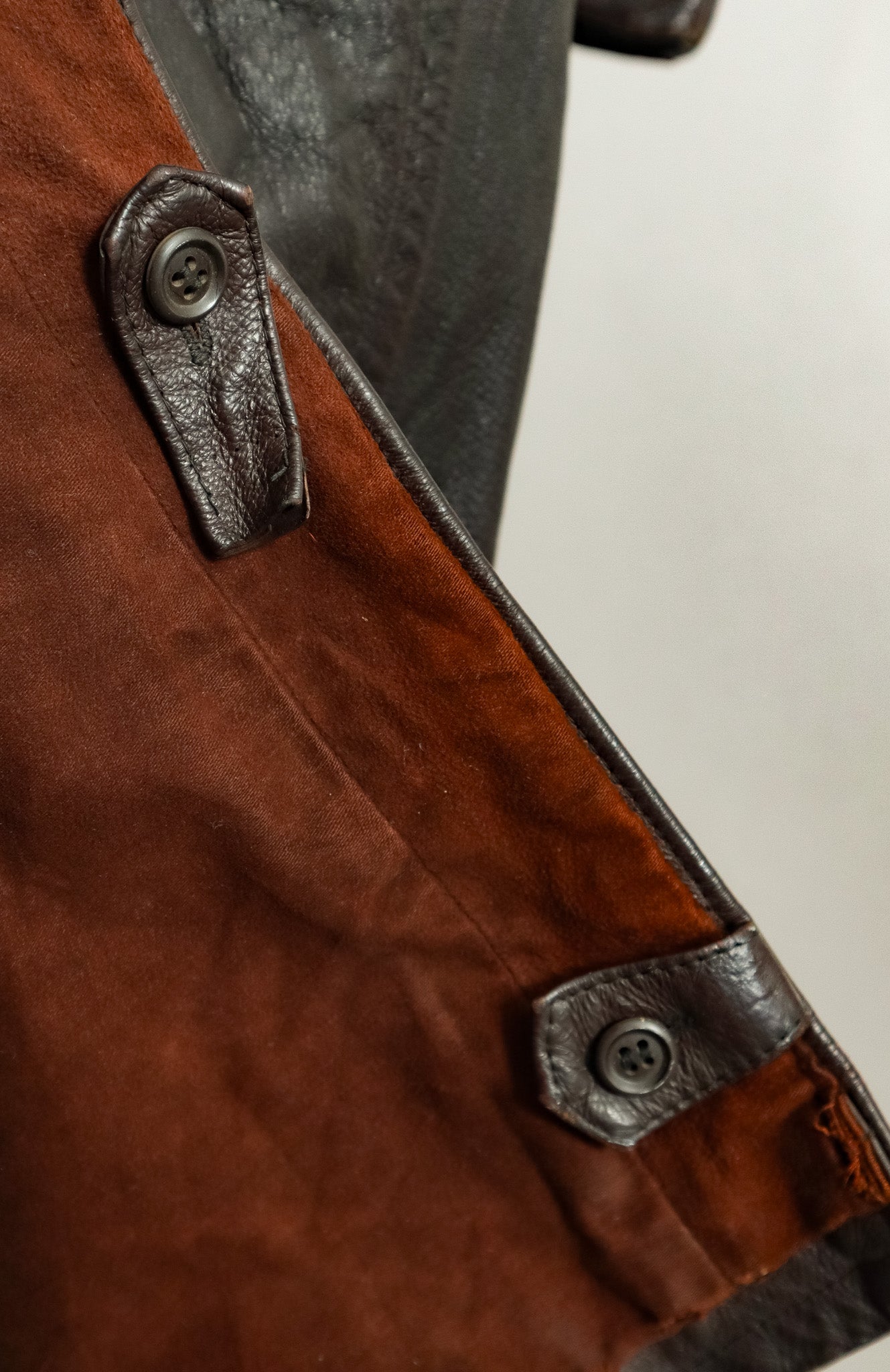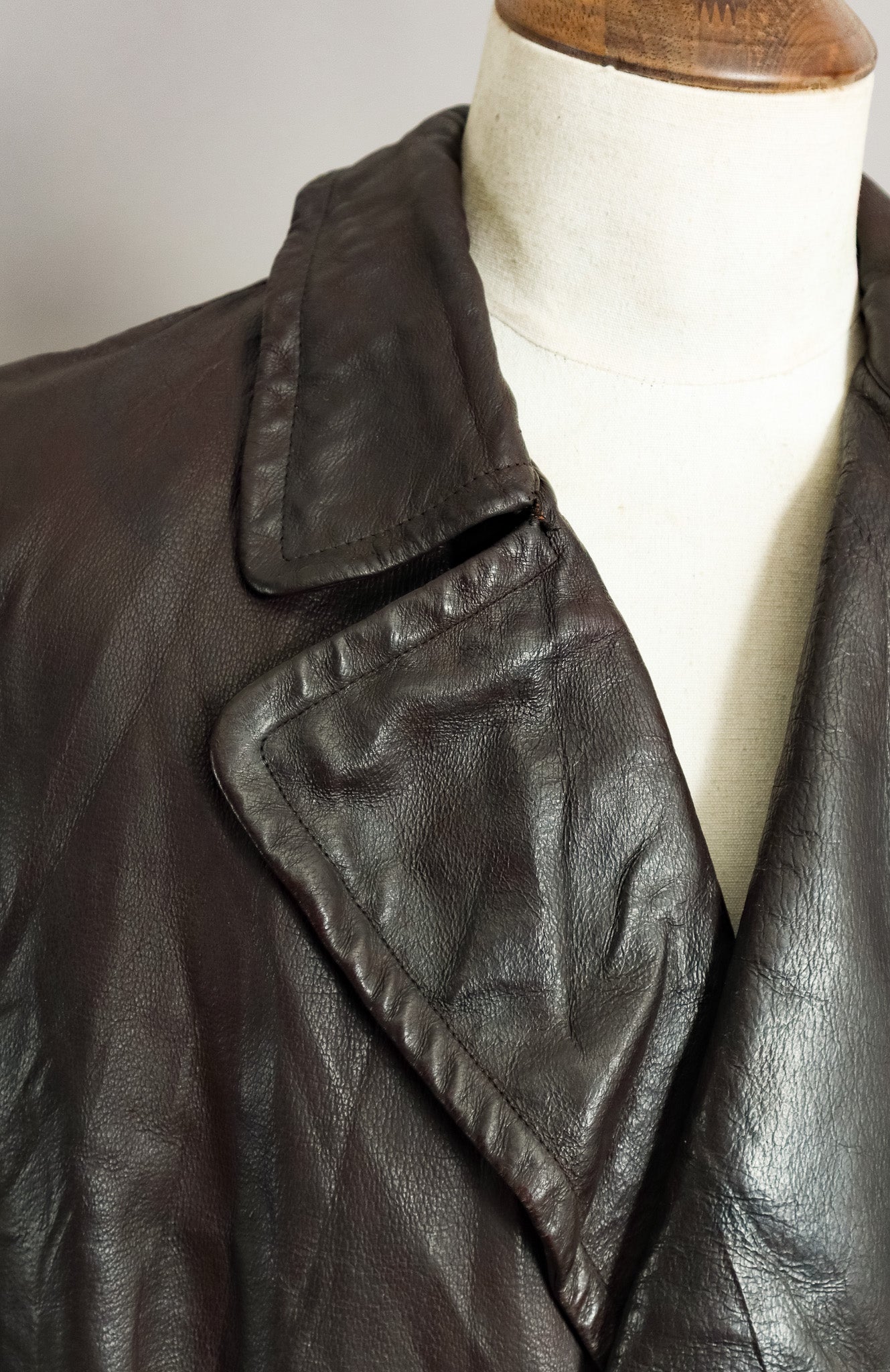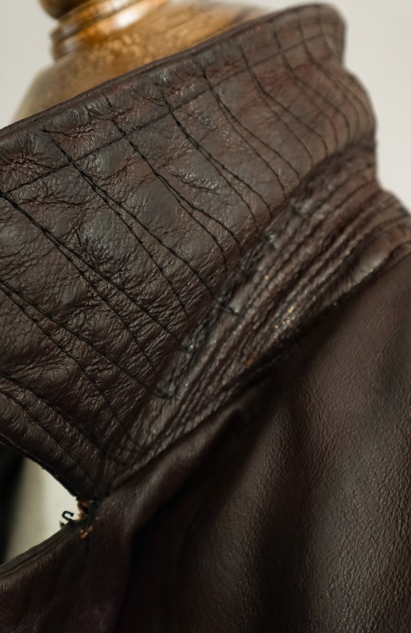 The goatskin leather, selected specifically for officer-grade garments has developed a character-rich patina over decades that simply cannot be replicated. Each crease and subtle mark tells the story of its journey through time, now carefully preserved through our signature restoration process.