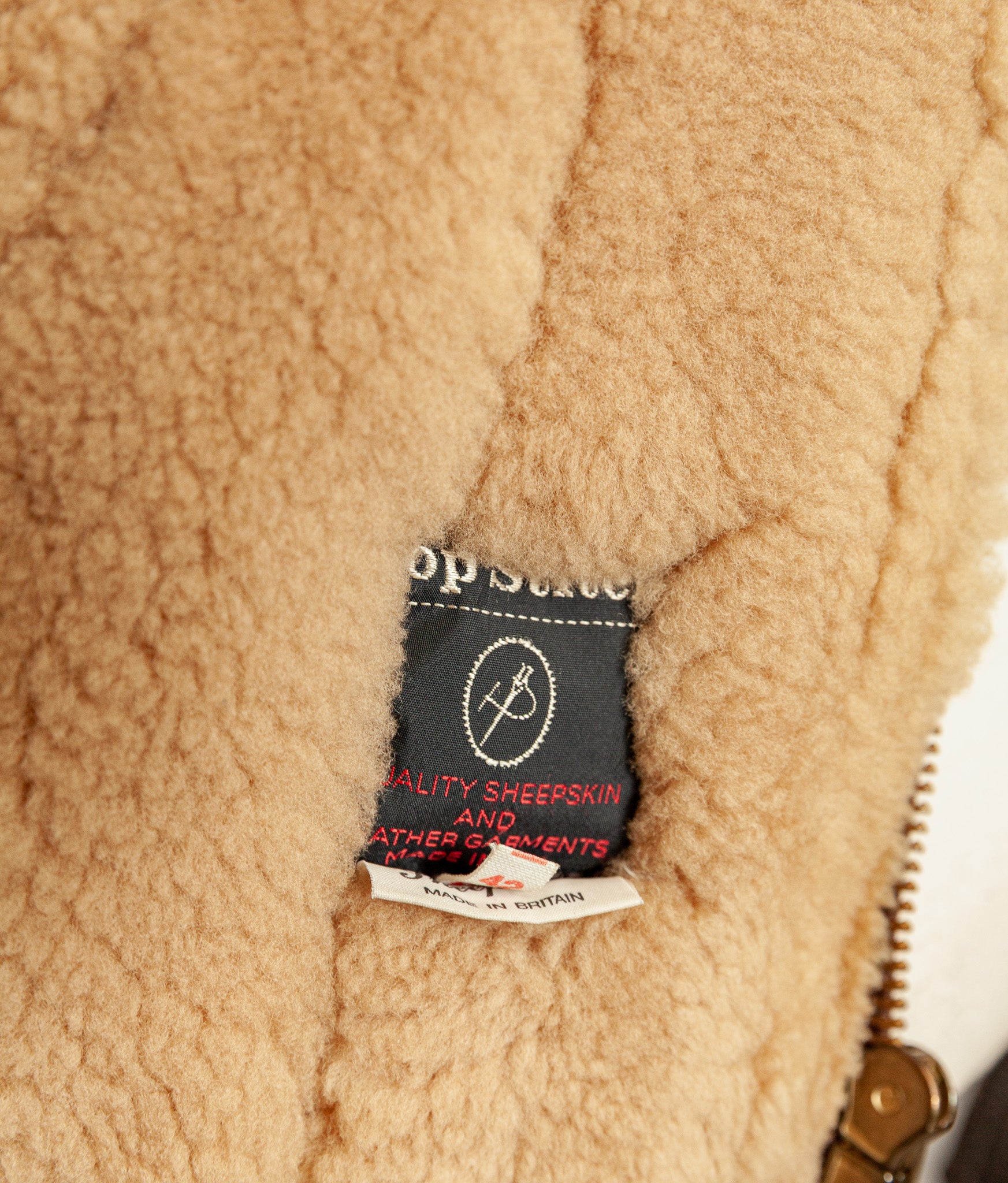Built with the unmistakable heft of true RAF ground- crew flight grade sheepskin, this 1980s Top Stitch Irvin-pattern jacket channels the raw, functional energy of the original WWII shearling flight coats. Substantial, uncompromising, and cut from extraordinarily thick hides, it represents the era’s dedication to recreating the authentic Irvin silhouette at full weight, the kind of jacket made to defy winter rather than simply endure it.