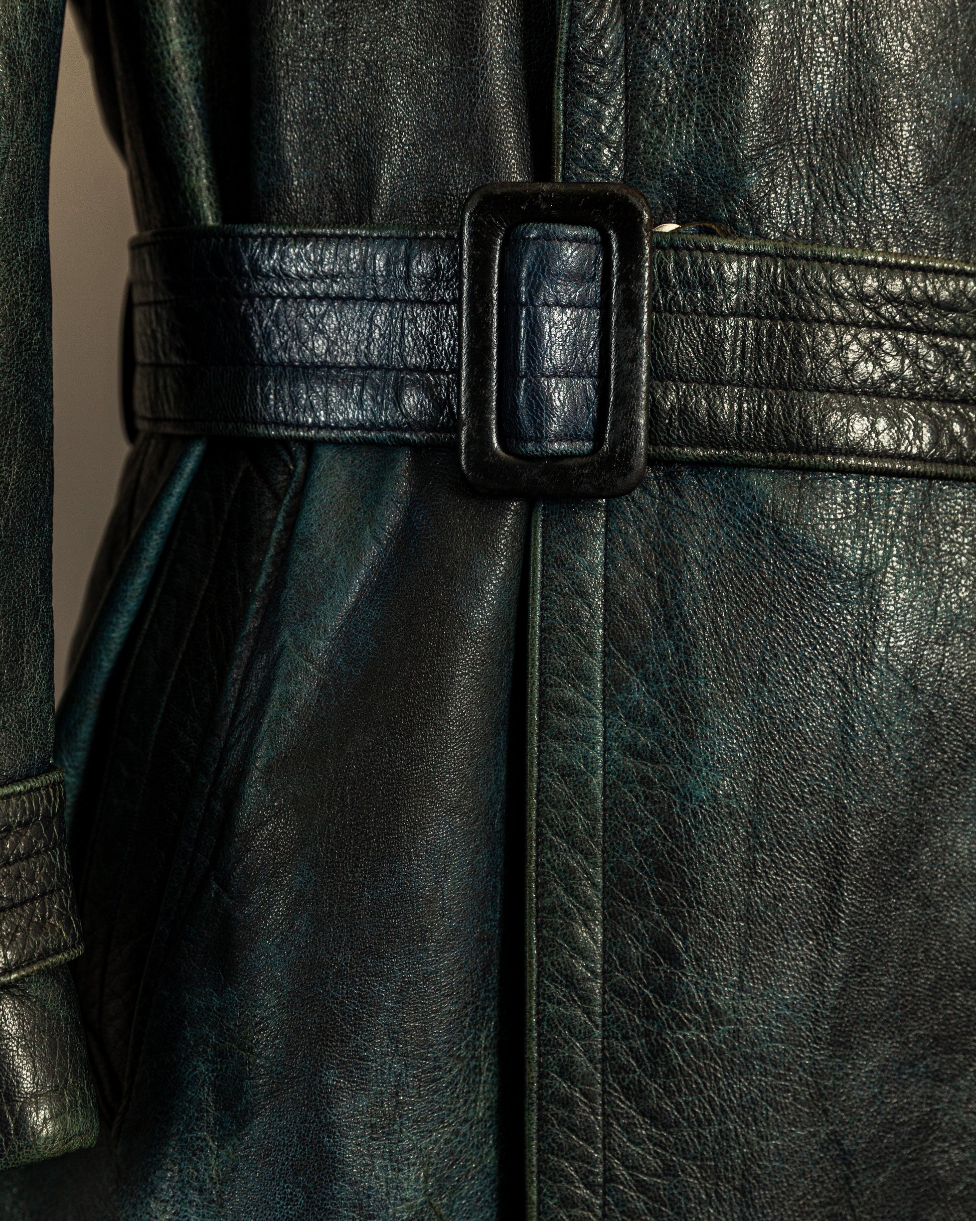 Vintage 1940s German Goatskin Leather Officer Trench Coat