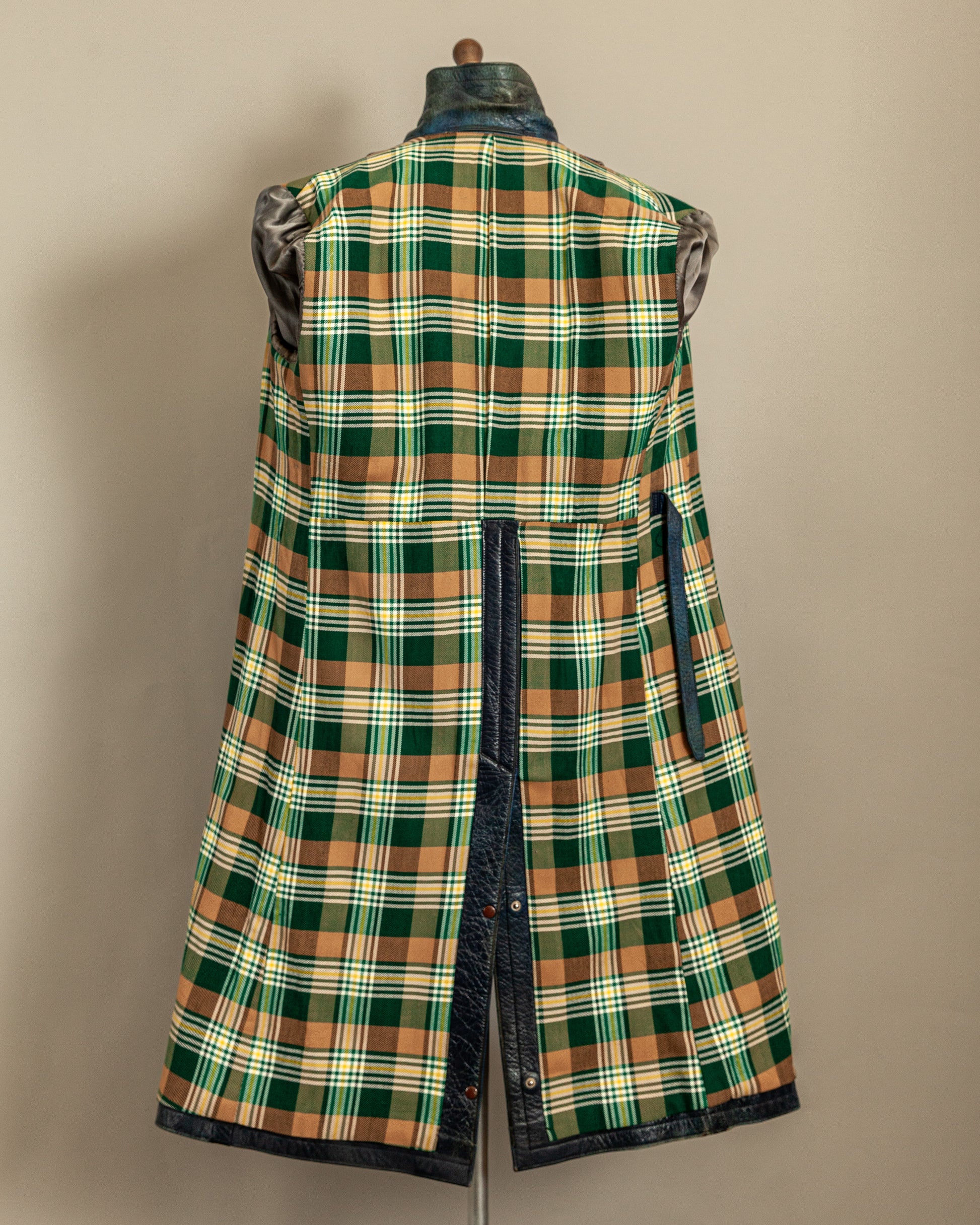 Inside, the wool check lining distinguishes this as a private purchase rather than a government issue item. Such patterned linings were reserved for individually commissioned garments, often selected by officers who wanted a warmer, more refined interior than the plain cotton or rayon linings common in standard military supply. It remains clean and structurally sound with only light age-related marks.