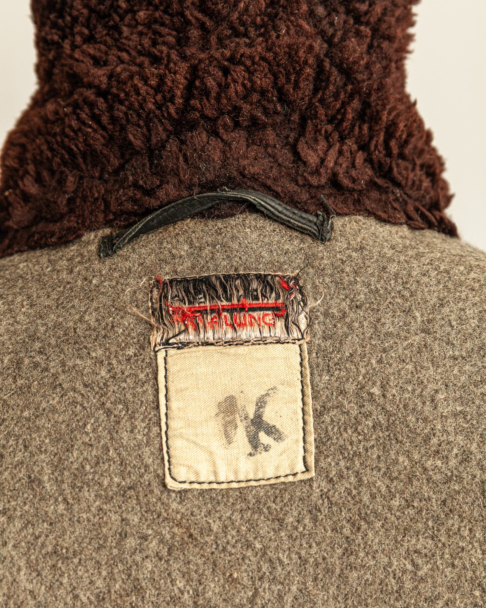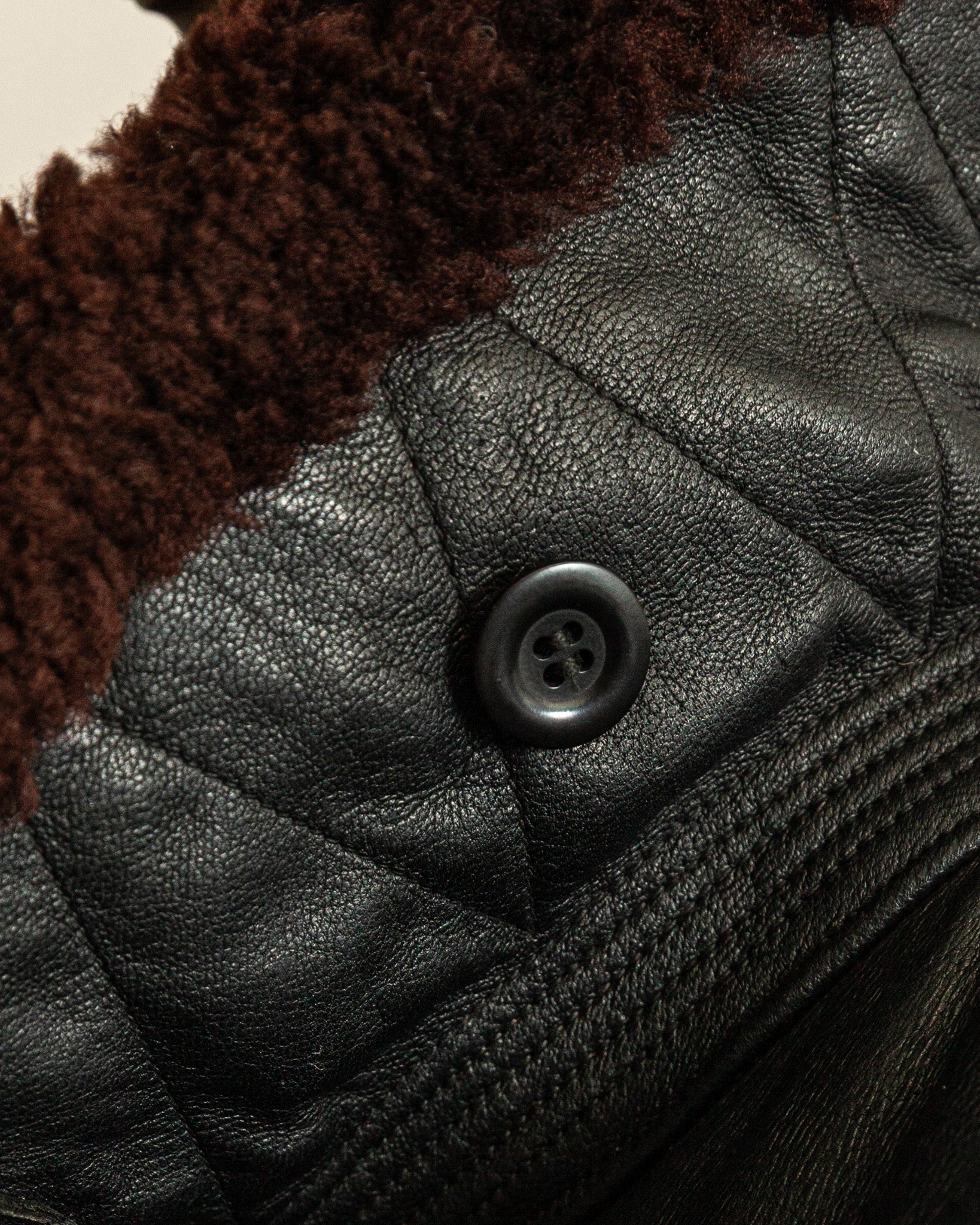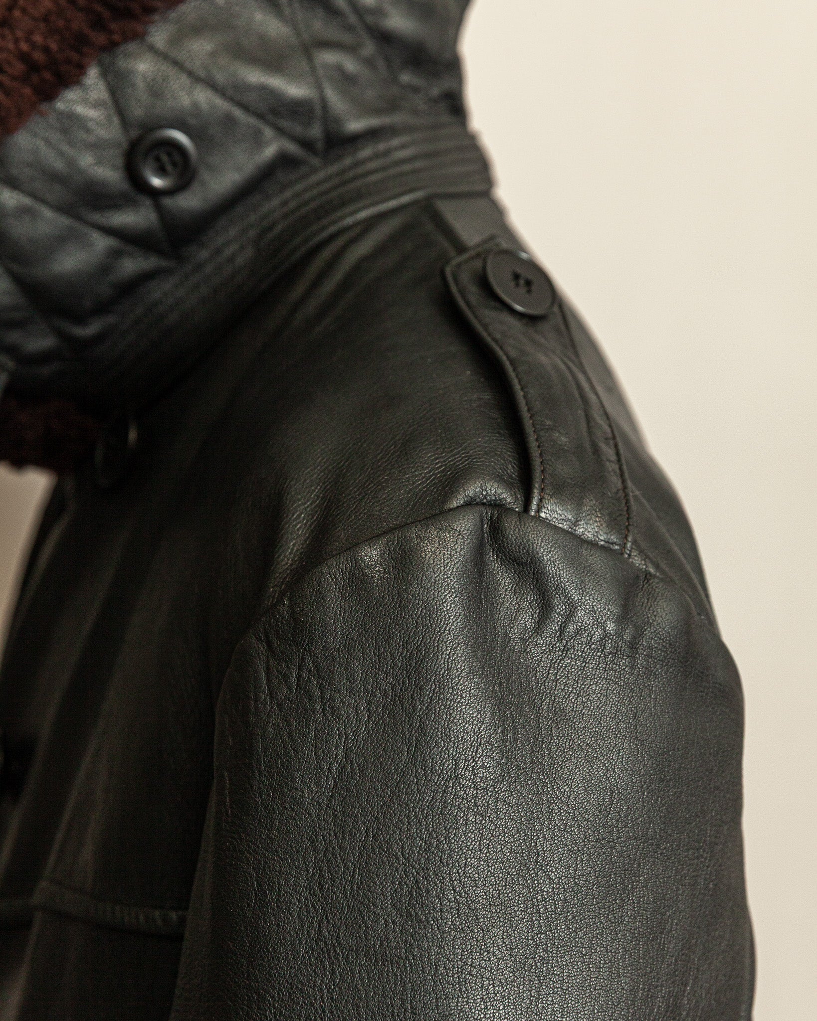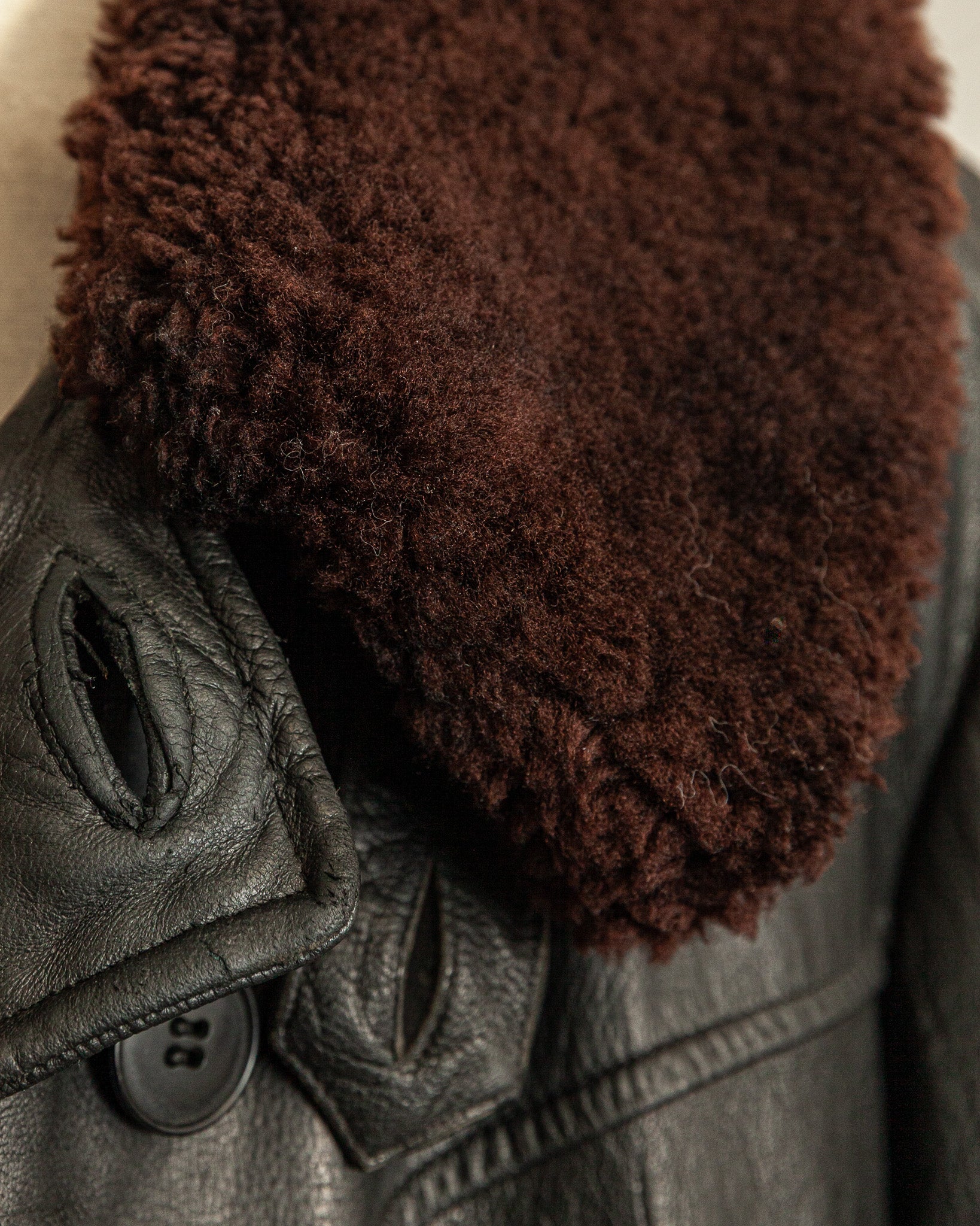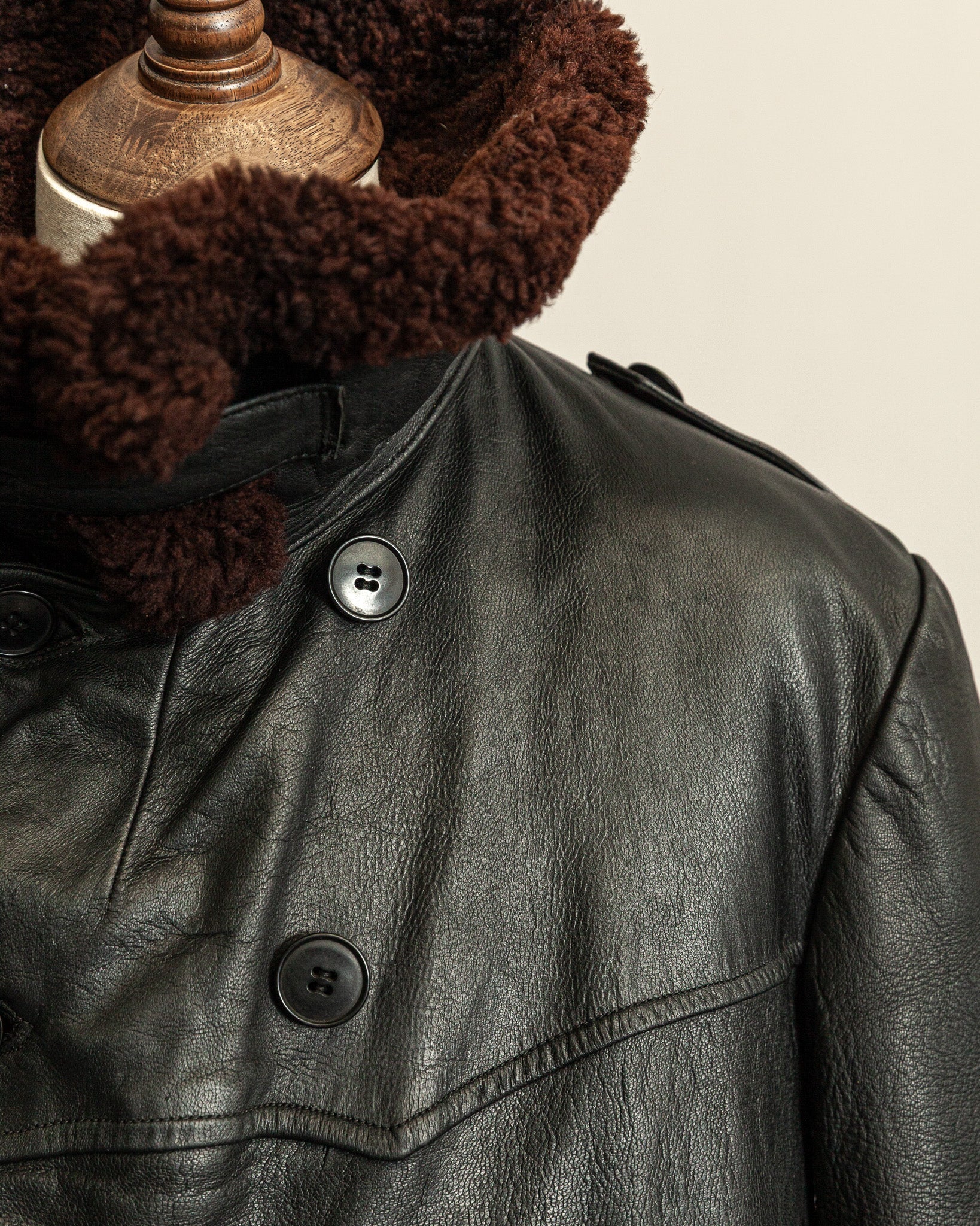 Professionally cleaned and conditioned in-house using specialist formulations, the leather retains its strength, flexibility, and depth of tone. The wool lining is soft and intact, while the collar remains plush and full. Every button, seam, and fastening has been carefully preserved to maintain the coat’s authenticity.