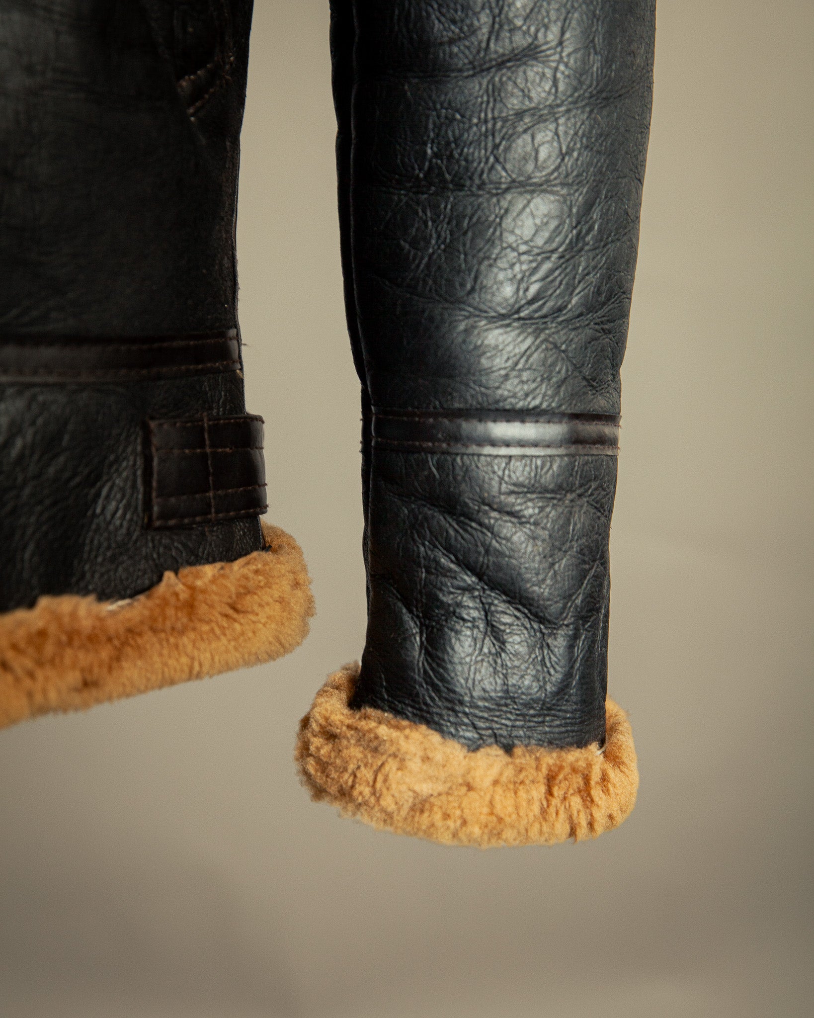 Professionally cleaned and conditioned in-house, the shearling retains its warmth and plush texture, while the leather remains strong, flexible, and beautifully preserved. Every detail — from the heavy-duty hardware to the reinforced seams — reflects a design built for survival at 20,000 feet and beyond.