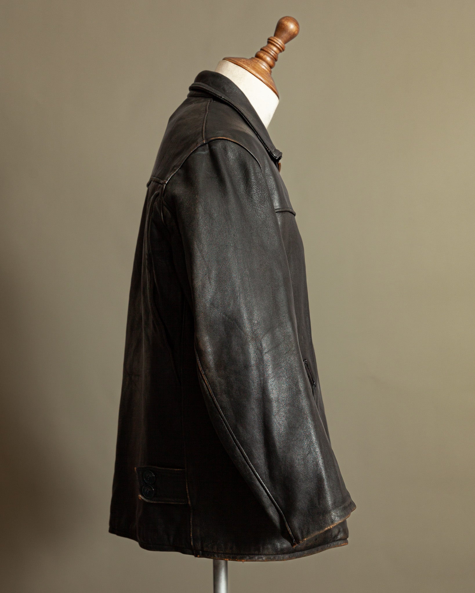Emerging from post-war France, this exceptional leather workwear jacket embodies the craftsmanship and ingenuity that defined the nation’s golden age of outerwear. Produced between the 1940s and 1950s, it represents a rare example of French utilitarian design — blending military influence with refined civilian tailoring. Constructed from full-grain vegetable-tanned cowhide and fitted with Eclair hardware, it captures the quiet confidence of mid-century French manufacture.