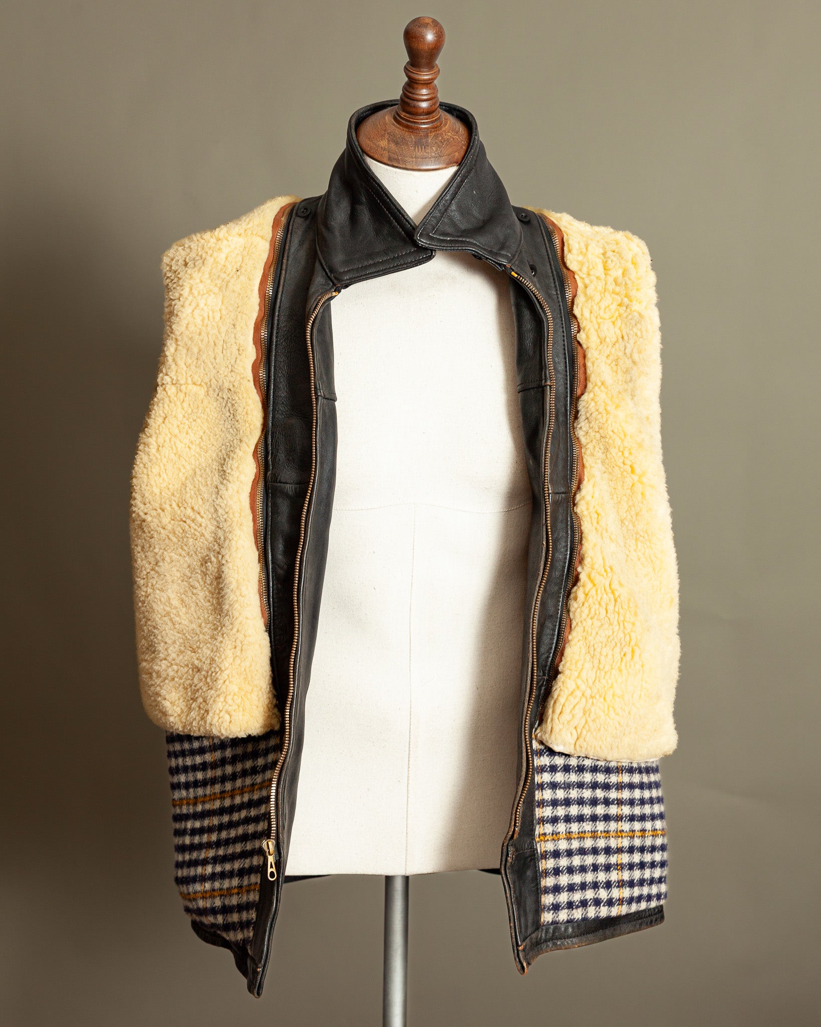 Condition is very good vintage, showing natural distressing, wear along seams, and a rich aged patina throughout. The sheepskin and wool lining remain clean and structurally sound, and all zips function smoothly.