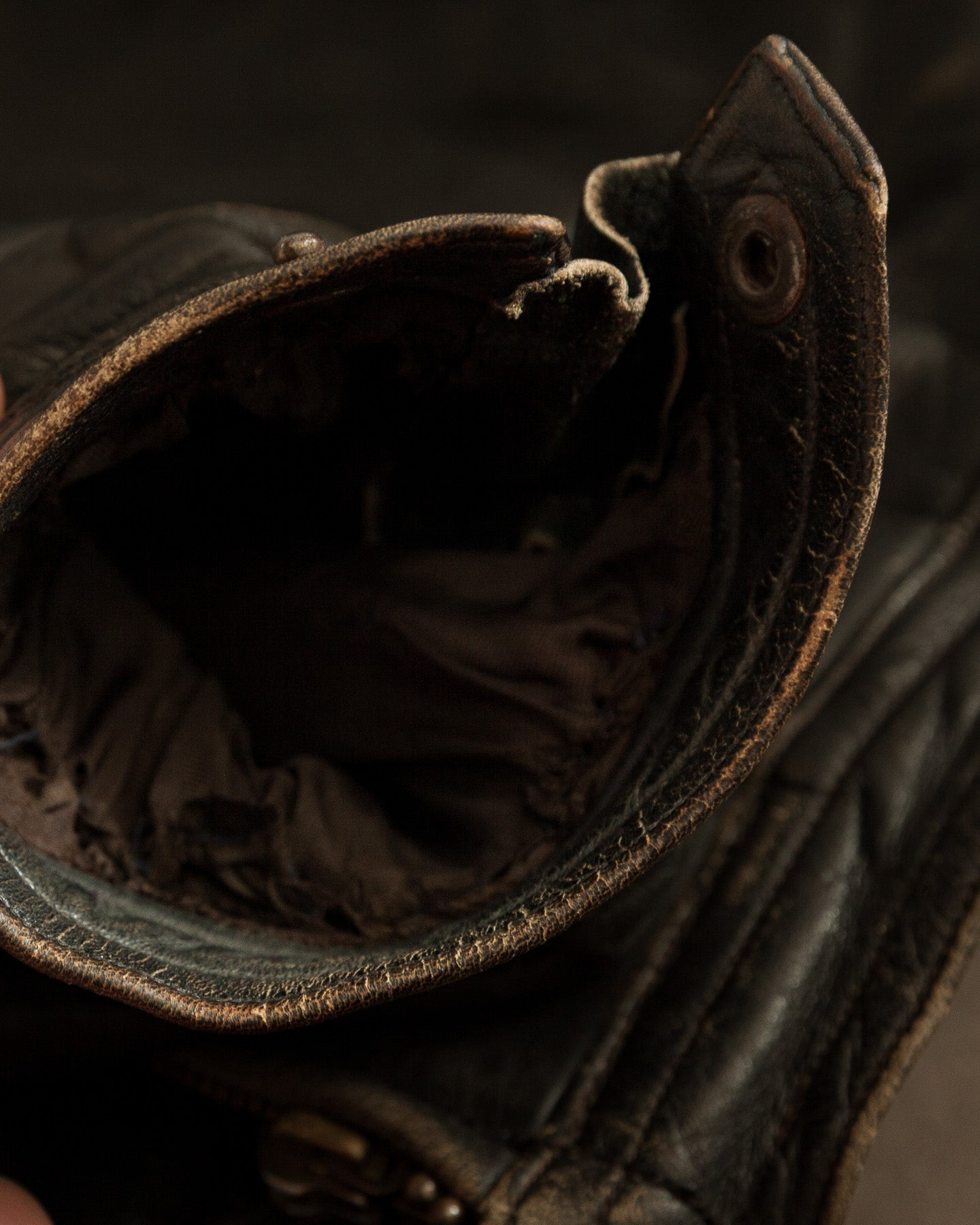 The garment has been professionally cleaned and conditioned using a preservation led approach. No structural reconstruction to the outer leather was required.
