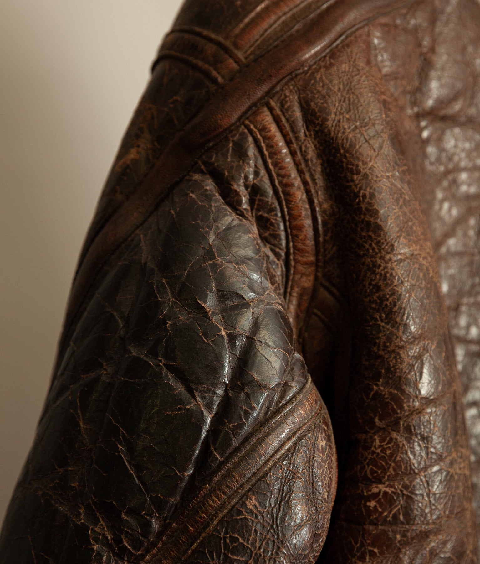 This suit has been handled with restraint and respect for its age and significance. The leather has received only light surface cleaning, followed by a careful application of our neutral conditioner to preserve suppleness and prevent further drying. No aggressive cleaning, reworking, or cosmetic intervention has been carried out.