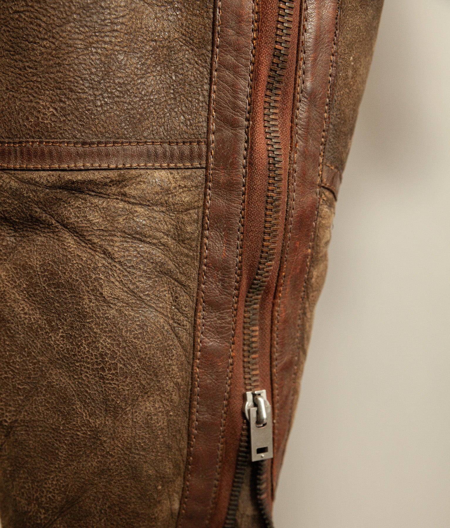 The zips have not been forced or worked beyond their natural movement. Given the age of the components and the stiffness present in certain areas, preservation has been prioritised over function throughout.