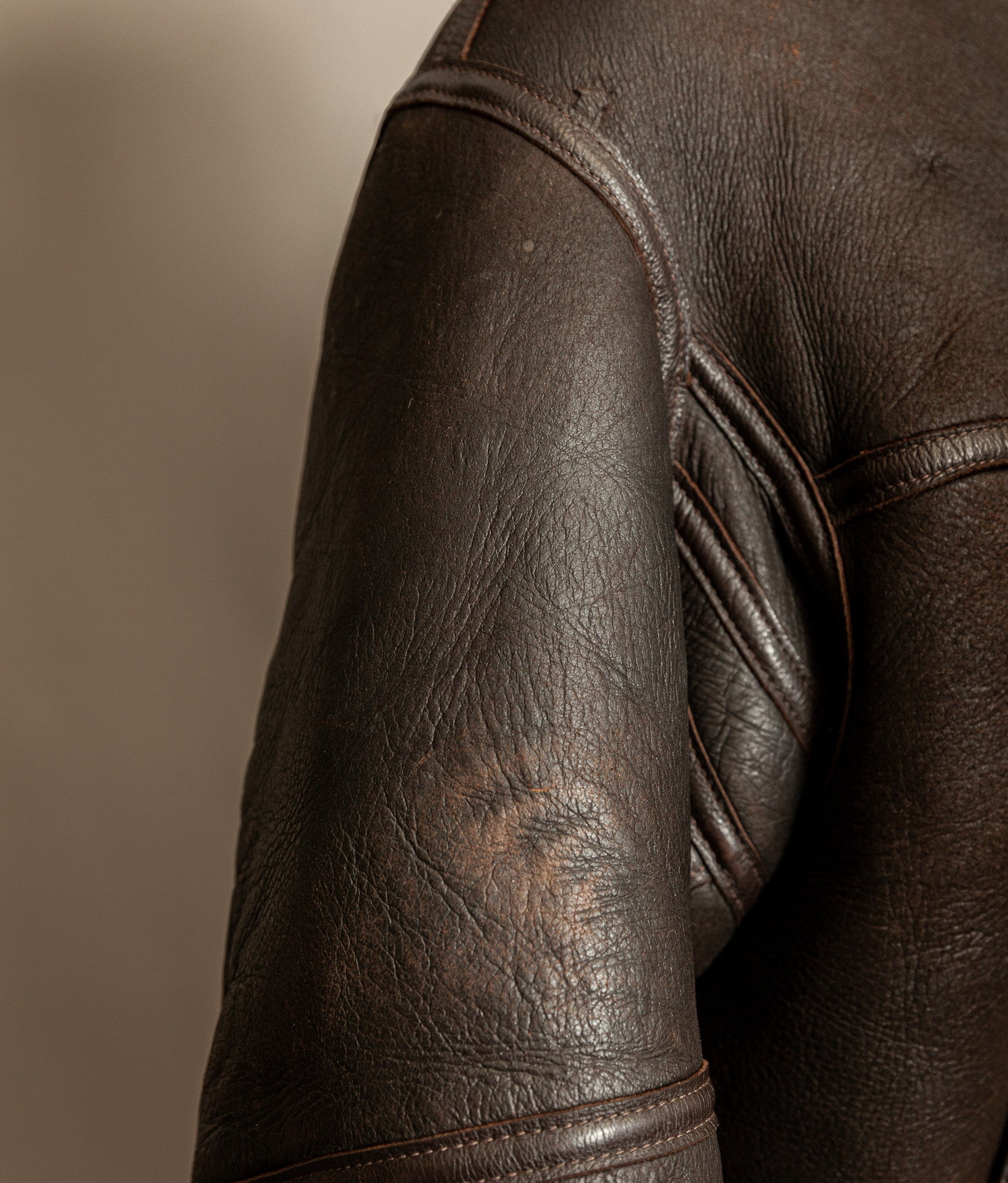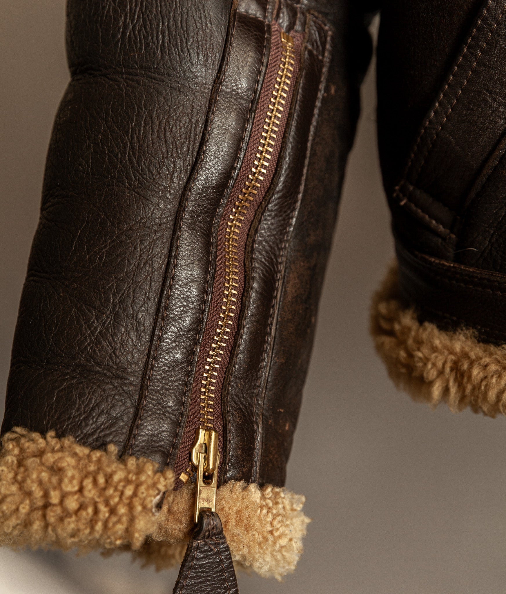 The condition is beautiful, very good vintage, showing a lightly distressed and storied patina that reflects the natural ageing of quality hide. The leather remains strong and supple, while the shearling is full, soft, and warm. Professionally cleaned and conditioned in-house using our specialist formulas, the jacket retains its strength and tactile richness. The zips have been carefully refurbished and lubricated for smooth performance, ensuring continued reliability without compromising authenticity.