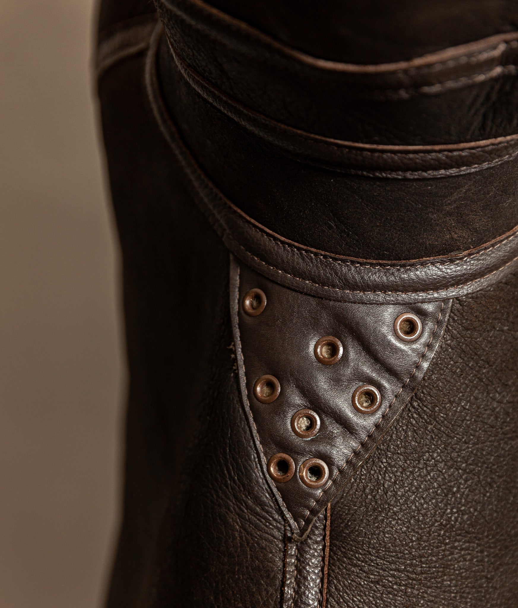 A superb example of British sheepskin craft, powerful in weight, honest in construction, and unmistakably built to last.