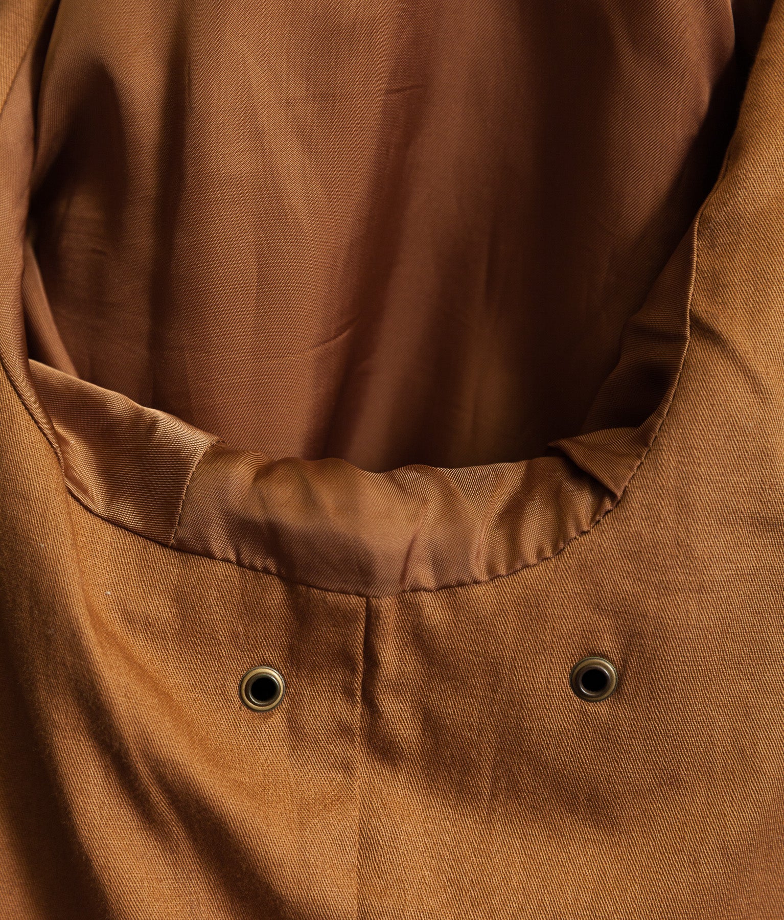 Proportions follow the traditional A2 blueprint. Cut cleanly through the torso with a defined ribbed waistband, the shape is structured yet wearable. A firm, balanced collar is secured with a traditional hook and eye throat latch. Stitched epaulettes and flap front pockets retain the unmistakable military profile, while the rib knit cuffs and hem anchor the silhouette with clarity and purpose. The design remains disciplined and controlled rather than decorative.