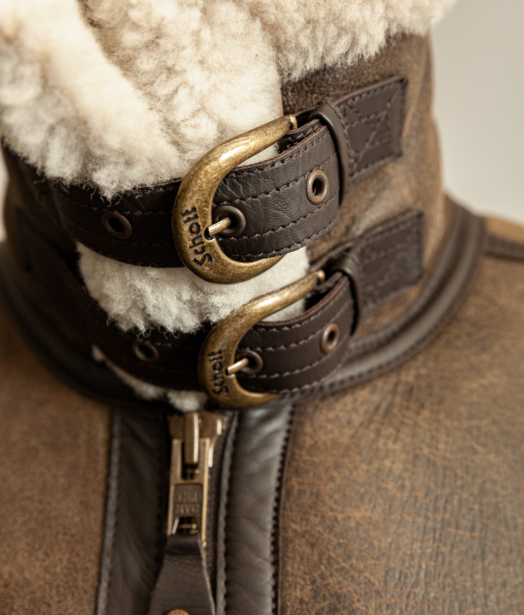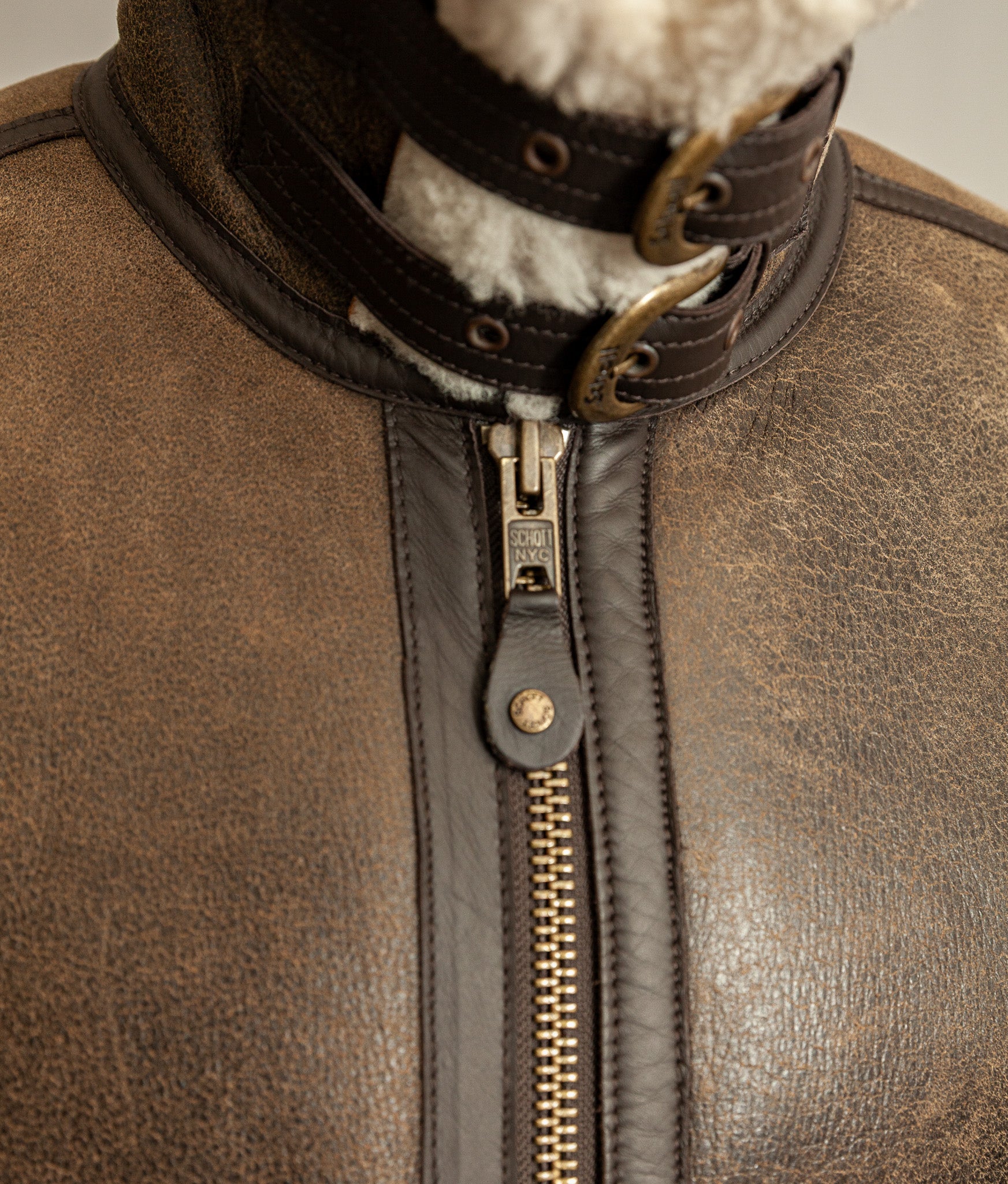 An unmistakable icon of cold-weather aviation style, this Schott LC1259 B-3 Sheepskin Bomber Jacket carries forward the enduring spirit of early flight gear with a sense of weight, purpose, and authenticity. Crafted from full-weight sheepskin with a striking white shearling interior, it reflects the uncompromising approach to warmth and protection that defined the original winter flying jackets. Designed not for flair, but for absolute dependability, it offers the presence and heritage collectors look for in a true shearling piece.