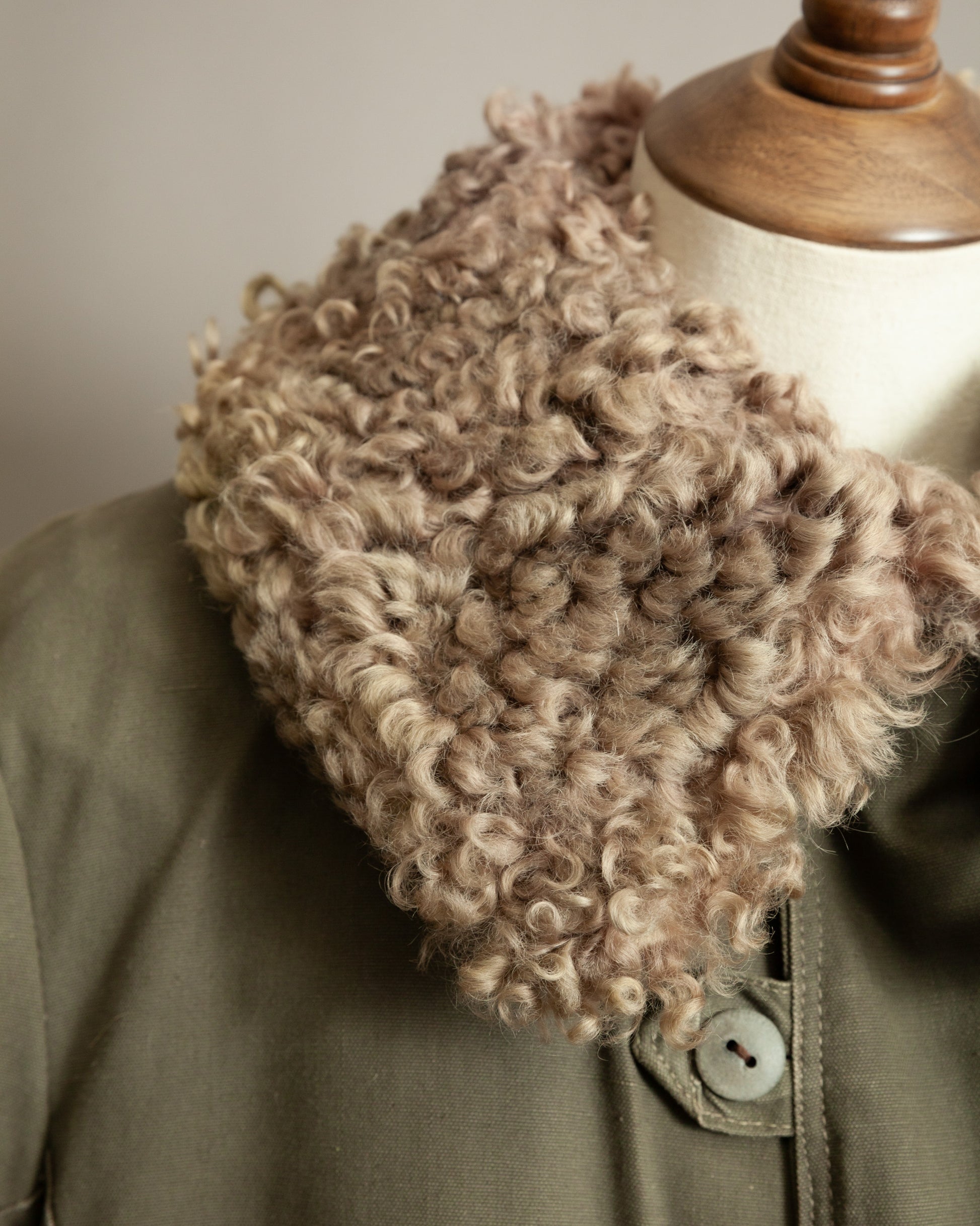 - Oversized Sheepskin Collar: Can be turned up for added wind protection, reflecting the coat’s functional military origins.