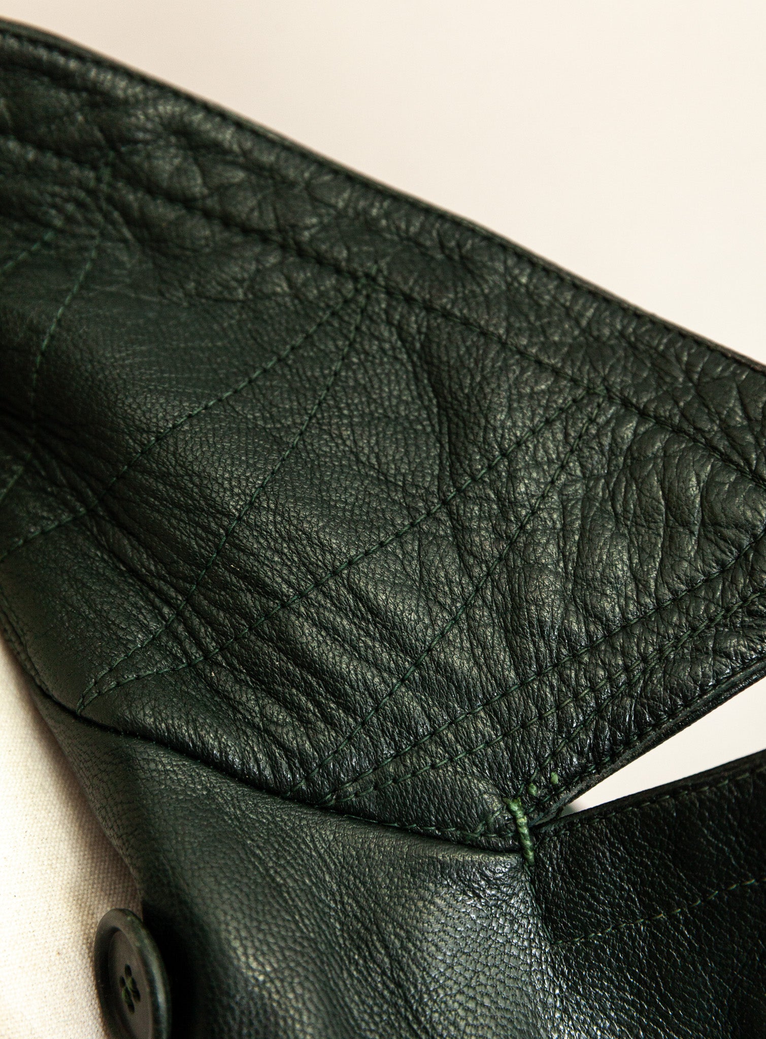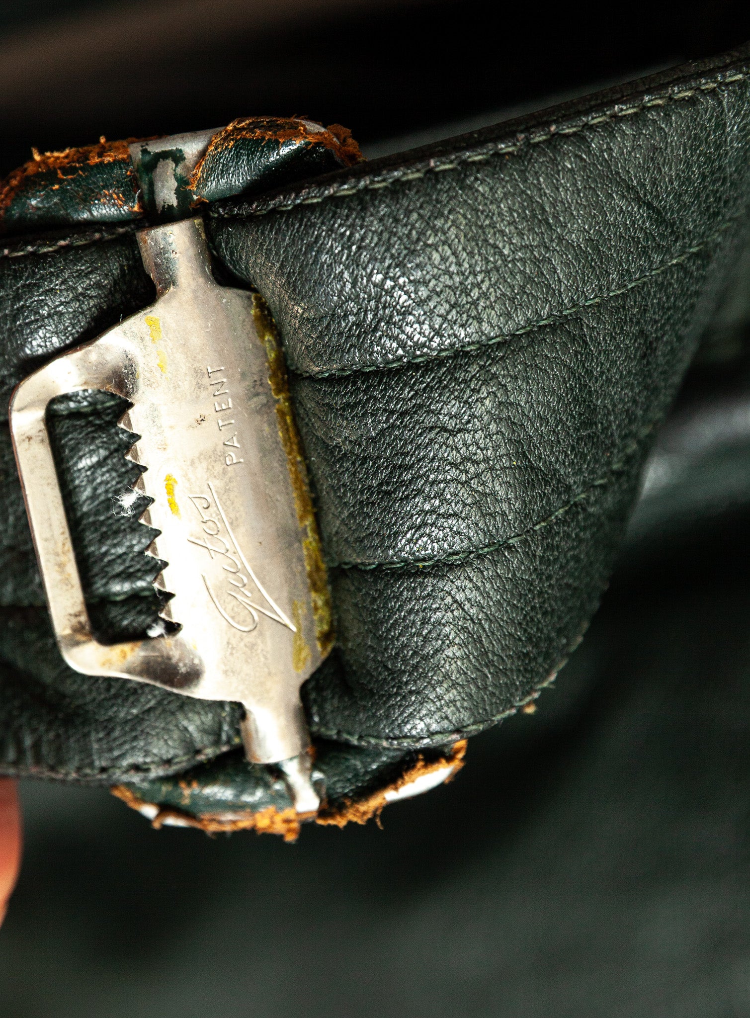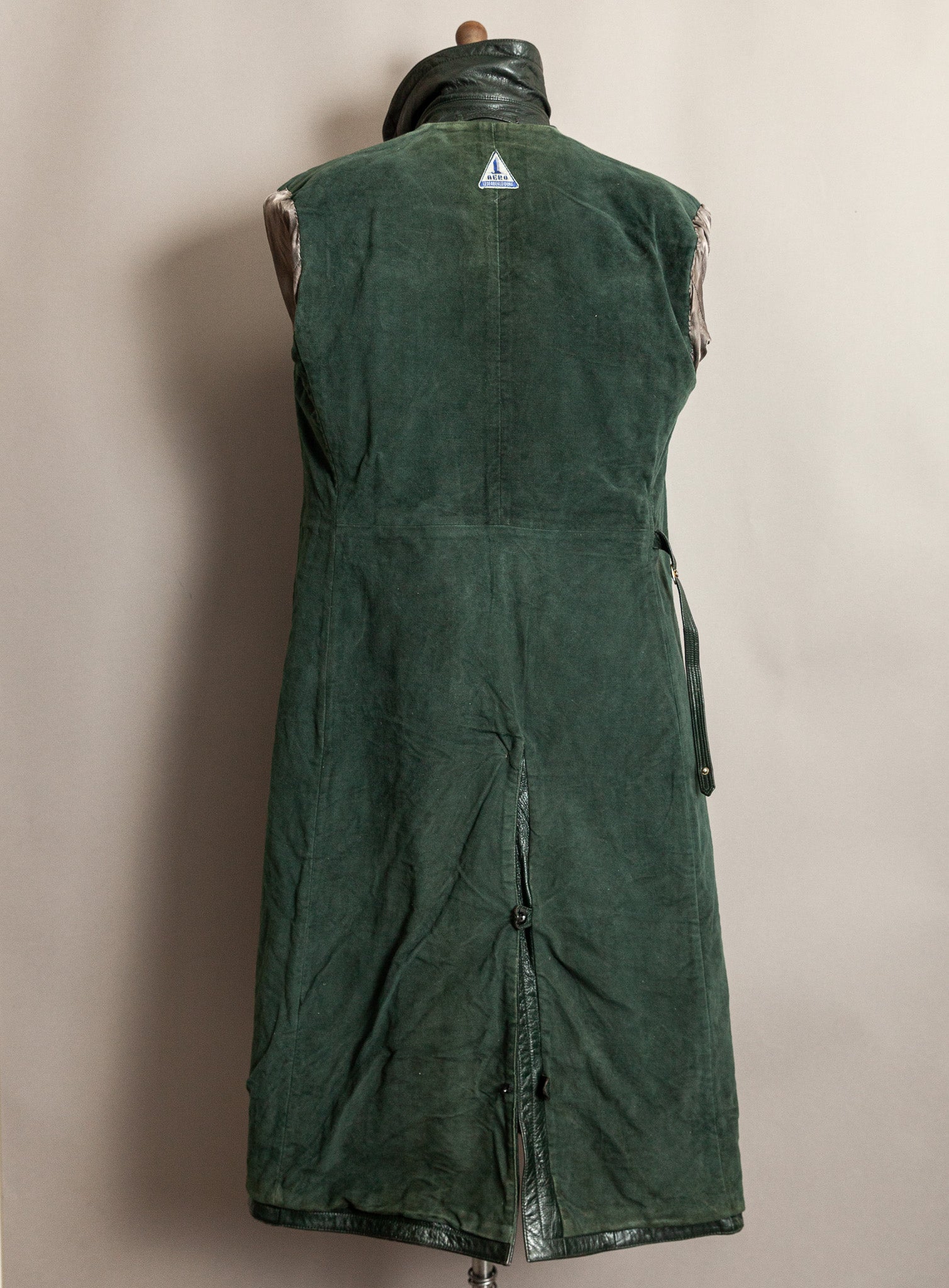 The horsehide used here is of remarkable quality. Dense yet supple, it retains its structural integrity more than 80 years later, showing a deep, even patina that speaks to careful preservation and decades of history. Horeshide was chosen for coats of this calibre not only for its resilience but also for its ability to mould with wear, offering protection without compromising movement — a balance of practicality and prestige.